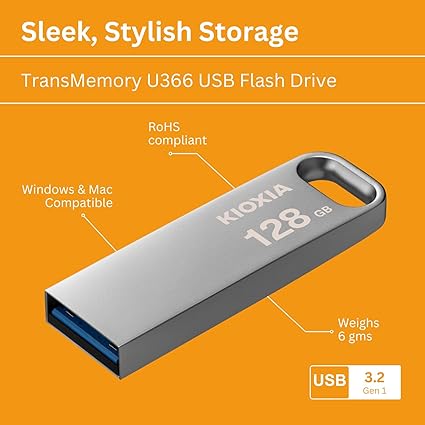 TransMemory U366 128GB USB Bellek – USB 3.2 Gen 1, Metal