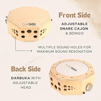 Huş ağacı kutusundan yapılmış, perküsyon kutusu tamburu, veya cajon kutusu, titreşen teller var. Bu, geleneksel davul benzeri efektine katkıda bulunan uğultu sesi yaratır.