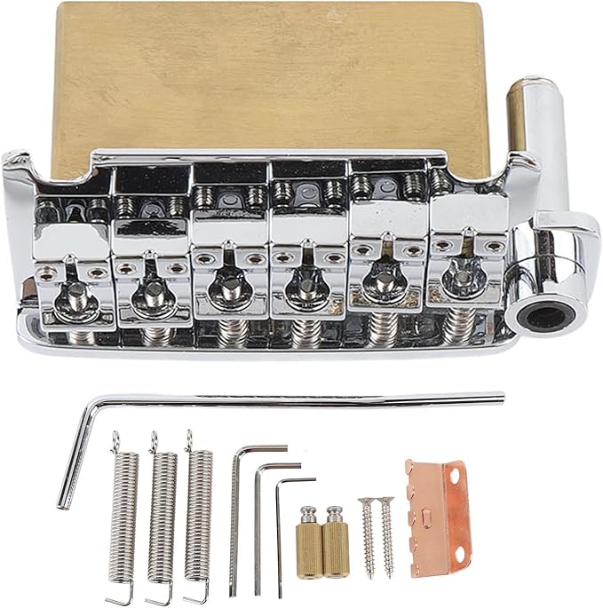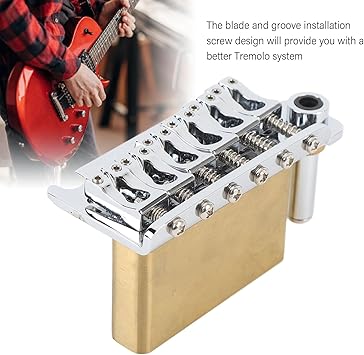 【Geliştirilmiş tremolo sistemi】 Bu gitar köprüsü, modern bir standart Stratocaster köprüsü ve bir Stratocaster köprüsü olarak kullanılmak üzere uygundur. Artan sürdürme için tremolo kolunda sağlam bir pirinç blok ve çelik itmes içeren kenar ve oluk montaj vidalarımızla mükemmell tremolo performansı yaşayın.