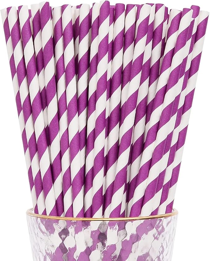 Trend Kağıt Pipet Mor Beyaz 25’li