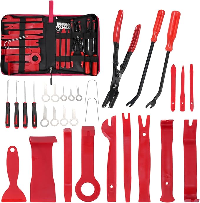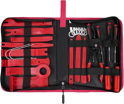 Paket İçeriği: 11 adet otomatik trim çıkarma aleti, 3 adet klips çıkarma aleti, 6 adet stereo temizleme aleti, 3 adet kablo terminali çıkarma aleti, 1 adet çıkartma kazıyıcı, 4 adet hassas çekme ve kanca seti, 2 adet U şeklinde temizleme aleti ve 1 adet saklama çantası.