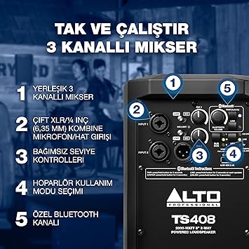 TS408-2000W 8 inç Powered PA Hoparlör 3 Kanal Mikser, Bluetooth Akışı, Kablosuz Hoparlör bağlantı, DSP ve Alto App