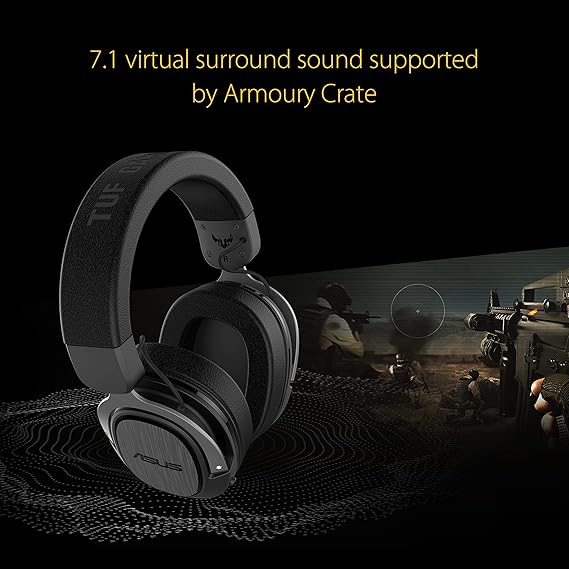 TUF Gaming H3 Wireless 7.1 Silver Oyuncu Kulaklığı, 15 Saat Çalma, 2.4 GHz Bağlantı, Medium, Siyah