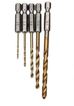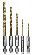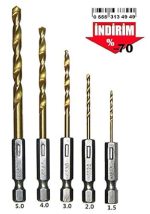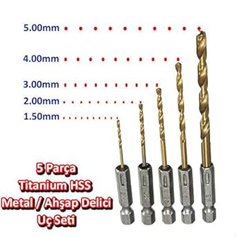 5 Parça Metal/Ahşap Uç Seti – 5,00mm – 4,00mm – 3,00mm – 2,00mm – 1,50mm ölçülerinde 5 adet metal/ahşap matkap uçu bulunmaktadır.
