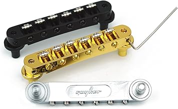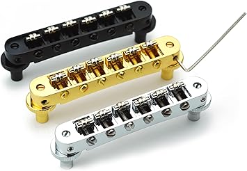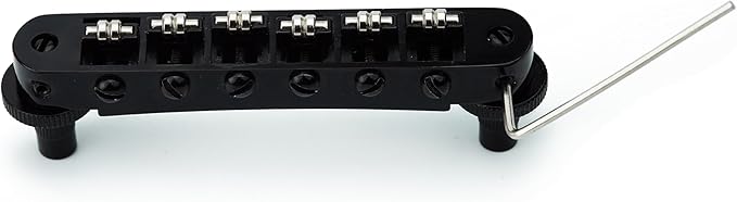 Tune-O-Matic Sarmalı Sele Köprüsü – Tel Boşluğu 10,5 mm Gitar Köprüsü, Direk Delikli, 4,2 mm Yedek, Les Paul LP SG 6 Telli Elektro Gitar GM015 ile Uyumlu, Siyah