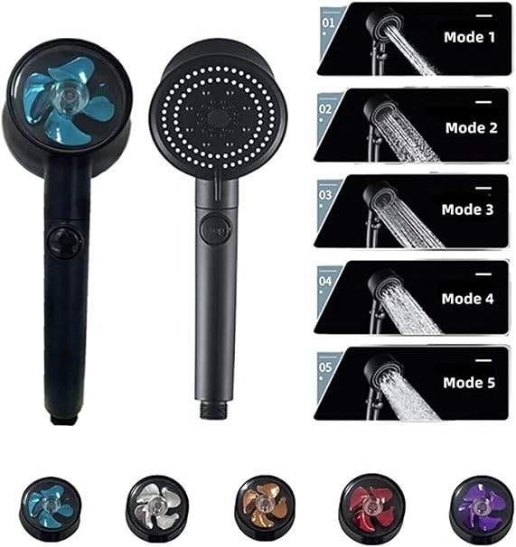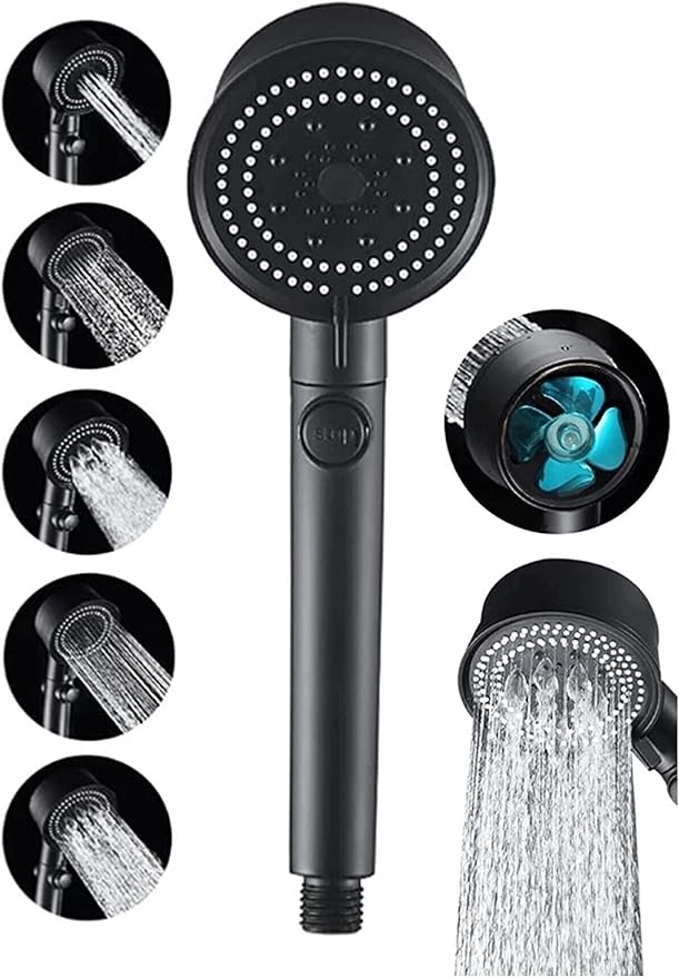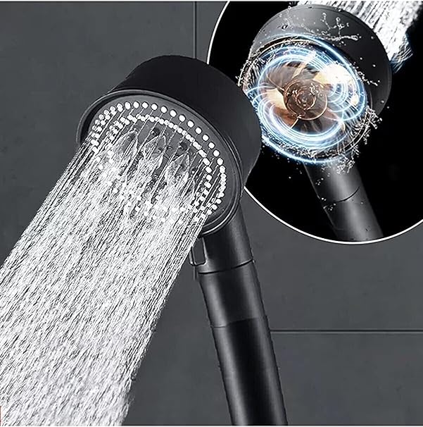 Turbo Black Power Siyah Pervaneli 5 Fonksiyonlu Yüksek Basınçlı Mat Siyah Duş Başlığı El Duşu – Garantili