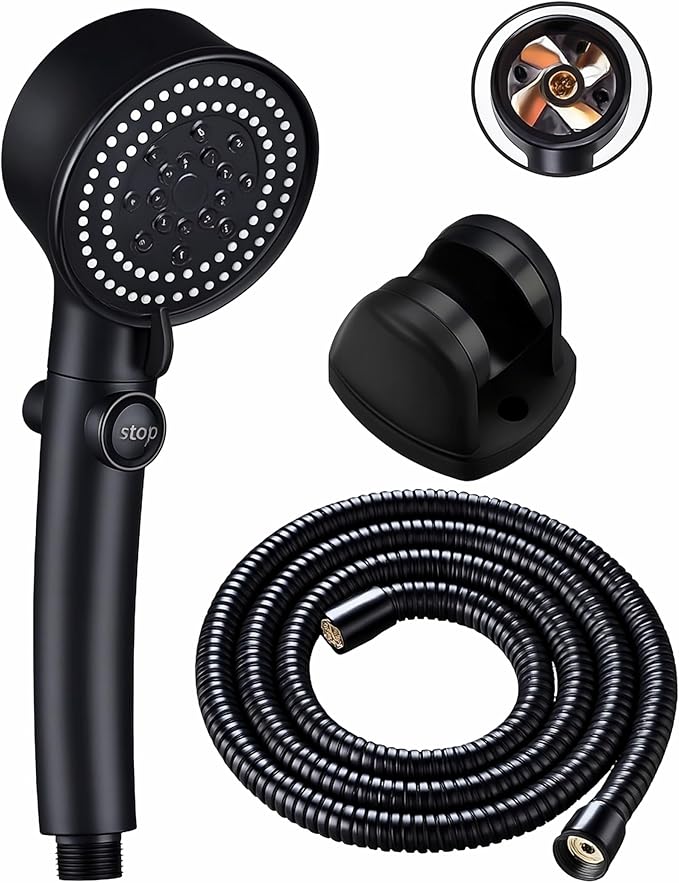 Turbo Pervaneli Basınçlı Duş Başlığı Seti | 5 Fonksiyonlu Sprey Modu, Ergonomik Tasarım, 150 cm Esnek Hortum ve Mafsallı Tutucu, Yüksek Basınç Su Tasarruflu Duş Sistemi