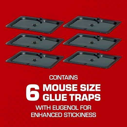 Tomcat Tutkal Tuzakları Fare Boyutunun her paketi Eugenol ile Geliştirilmiş Yapışkanlık için 6 tek kullanımlık fare boyutunda tuzak içerir