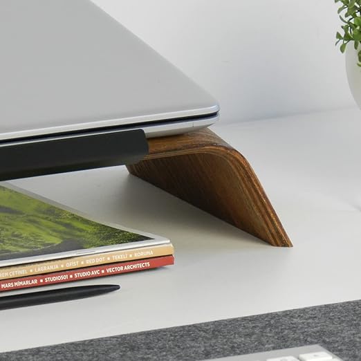 Ahşap laptop standı alüminyum aparatı sayesinde cihazınızın kaymasını engeller.