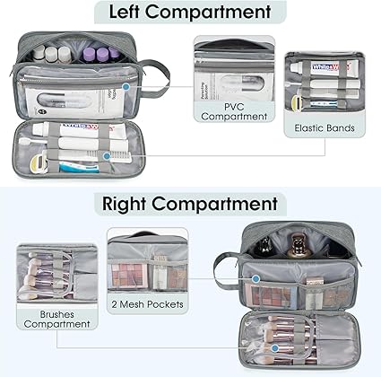 ✅ Çift taraflı katlanabilir tasarım. Örgü cepler ve bir tarafta PVC kapaklı fırça bölmesi, küçük seyahat eşyalarınızı ve makyaj aletlerinizi mükemmel bir şekilde organize edebilir. Kuru ve ıslak çamaşırlar için ayrı PVC bölme ve karşı taraftaki birden fazla elastik bantlar, havlular ve diş fırçaları gibi ıslak ve sızan ürünler için idealdir.