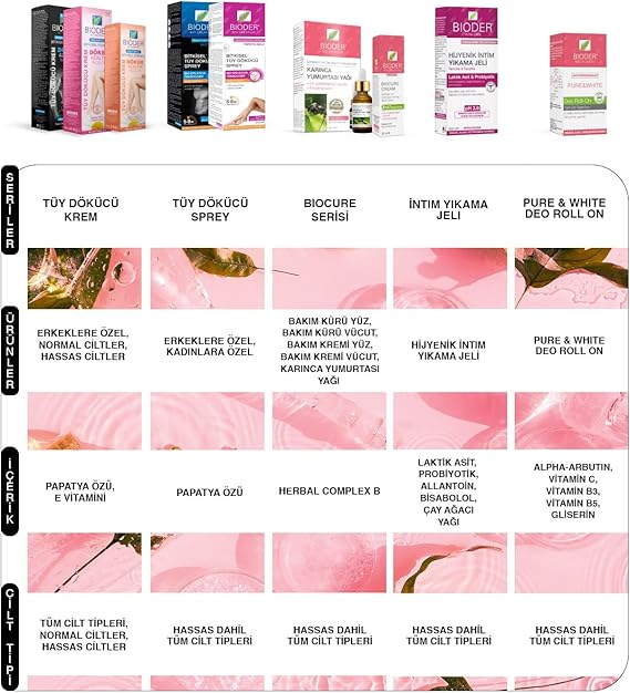 Ürün tipi: Tüy Dökücü Kremi: Bioder markasının hassas ciltler için geliştirdiği tüy dökücü kremi, bakım için önerilir.