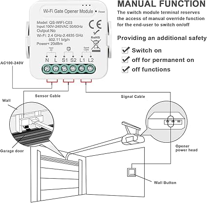 【Voice Control】: Supports voice commands to control the garage door, compatible with Home and Alexa for voice control, ing your hands and making it easier to control the device, to meet your individual needs.