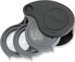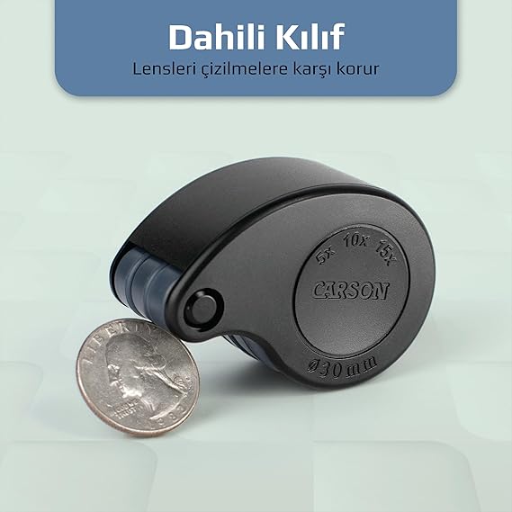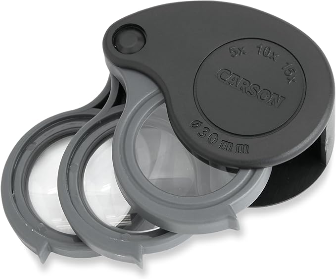 5x/10x/15x Dahili Kılıf büyüteçli Katlanır Büyüteç, gücü 5x-15x arasında değişen güçte kompakt, taşınabilir katlanır büyüteç büyüteçtir. Her lens 5x güçlü büyütme içerir. 10x güçlü büyütme için iki lensi veya 15x güç için üç merceği birleştirin. TriView büyüteci hafiftir, taşınabilirdir ve kendi koruyucu kılıfı içinde gelir.