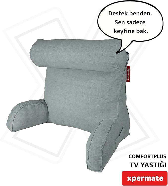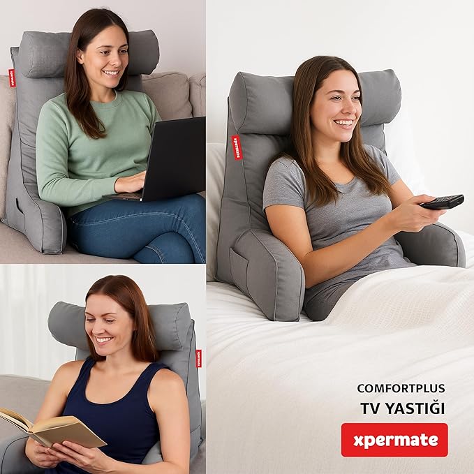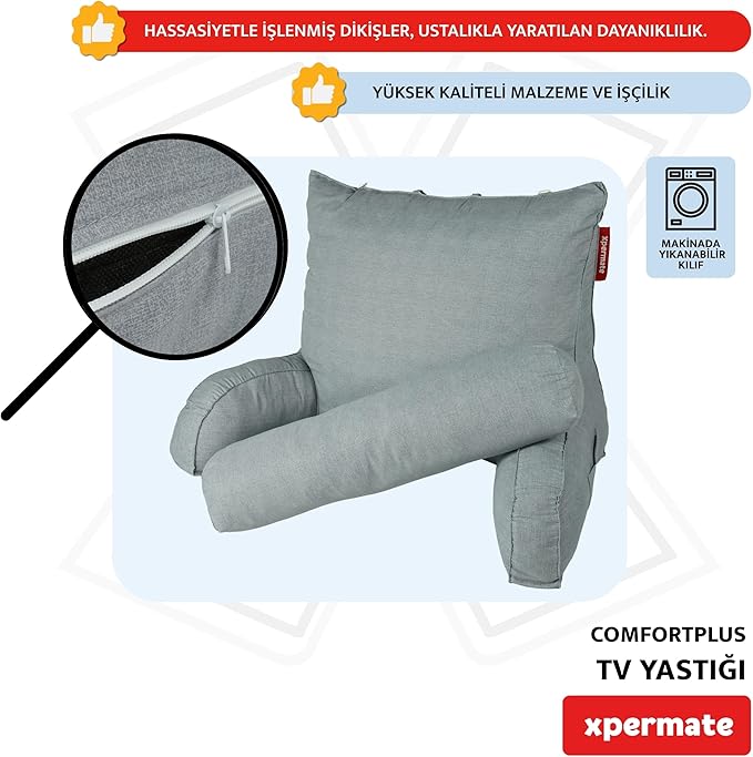 XPERMATE ComfortPlus Tv Yastığı, Kollu Okuma Yastığı, Ayarlanabilir Sırt Destek Yastığı, Boyun Desteği, Tv Yastık ve Üçgen Yastık, Fermuarlı Sırt Yastığı, Bel Yastığı