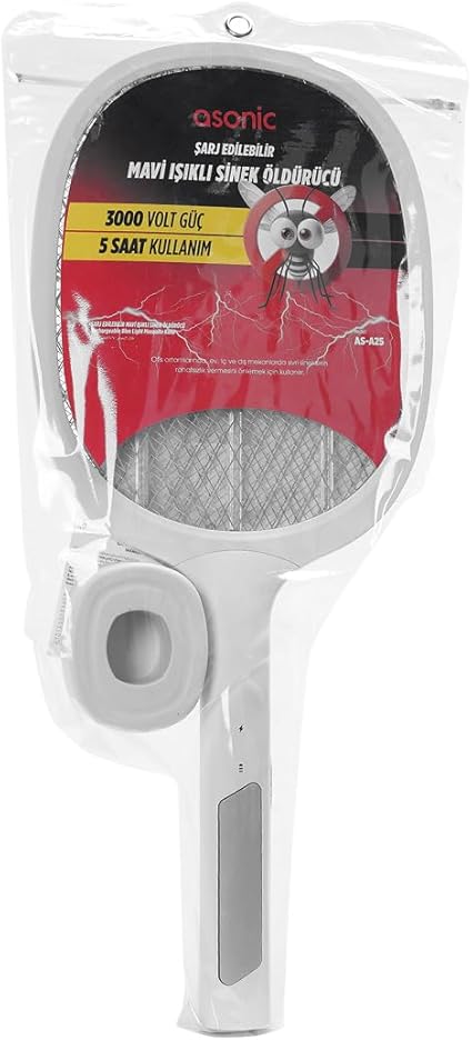 Asonic AS-A25 sinek öldürücü raket, modern özellikleri ve güçlü performansı ile etkili böcek kontrolü saglar. 1200mAh kapasiteli şarj edilebilir pili ve Type-C şarj girişi ile kullanım kolaylığı sunarken, 3000V çıkış gücü ile etkili sonuçlar elde eder. UV mavi ışık teknolojisi sayesinde böcekleri çekerek yakalama başarısını artırır. 5 saatlik kesintisiz kullanım süresi ile uzun süreli koruma sağlar. Ergonomik tasarımı ve masaüstü kullanım özelliği ile hem ev hem de açık alan kullanımına uygundur.