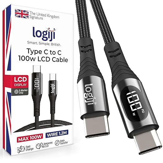 Type-C to Type-C Dijital LED Ekranlı Göstergeli Hızlı Şarj Kablosu E-Mark Çipli, Dayanıklı Örgülü, 1.2m, USB-C PD 3.0, iPhone 15 16,17 Samsung Xiaomi Telefon, Macbook Laptop Tablet Uyumlu