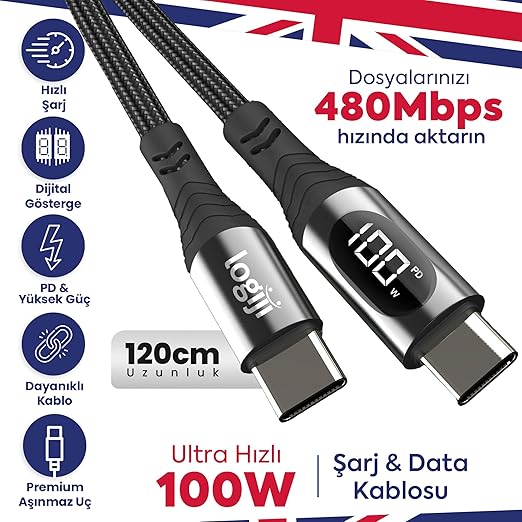 1.2M UZUNLUK VE GENİŞ UYUMLULUK: İdeal uzunluk, hareket özgürlüğü sağlar. Tüm Type-C girişli telefon, tablet ve dizüstü bilgisayarlarla tam uyumludur.
