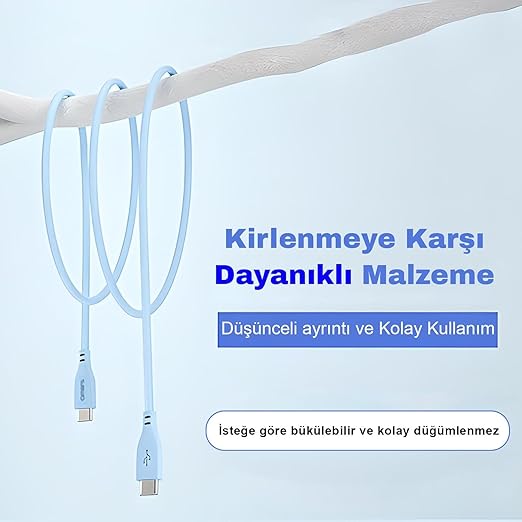Type-C to Type-C Silikon PD Hızlı Şarj Kablosu Mavi