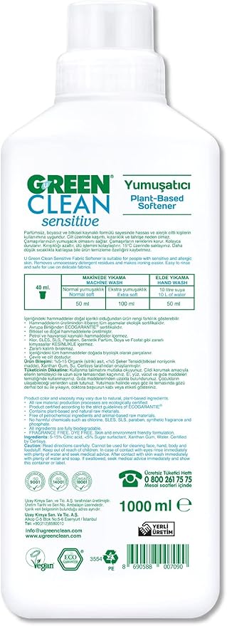 U Green Clean Sensitive Parfümsüz&Boyasız Bitkisel Yumuşatıcı 1000 ml