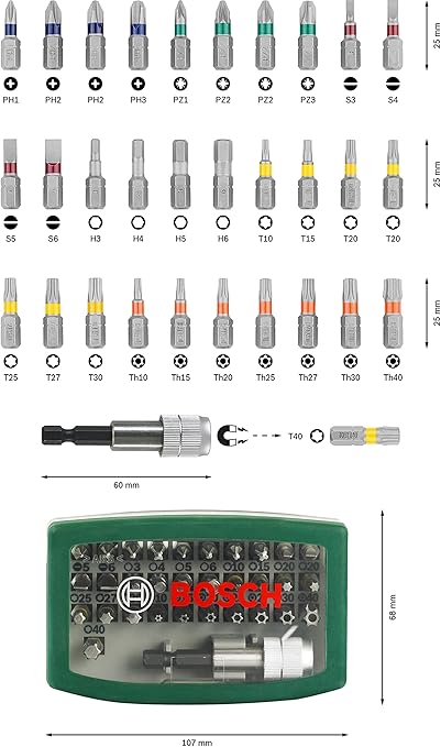 PH 1/2/2/3, PZ 1/2/2/3, S 3/4/5/6, HEX 3/4/5/6, T 10/15/20/20/25/27/30/40, Th 10/15/20/25/27/30/40