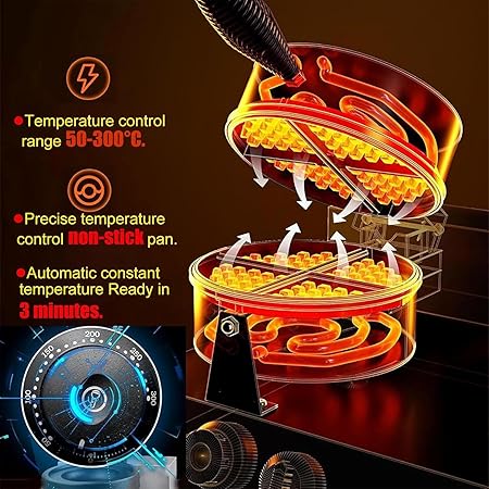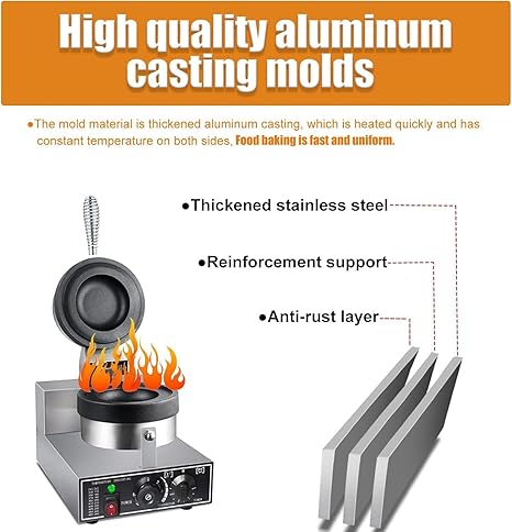 【Yapışmaz Kaplama – Kalıptan Çıkarılması ve Bakımı Kolay】Bu profesyonel waffle makinesi, yüksek kaliteli yapışmaz kaplama ile tasarlanmıştır, yiyeceklerin kalıptan çıkarılmasını kolaylaştırır ve yoğun temizlik ihtiyacını azaltır. Hızlı ve verimli yemek yapmayı sevenler için ideal bir avantaj.