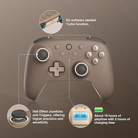 Ultimate 2C Wireless Controller for Windows PC and Android, with 1000Hz Polling Rate, Hall Effect Joysticks and Hall Triggers, and Remappable L4/R4 Bumpers, Turbo Function (Brownie)