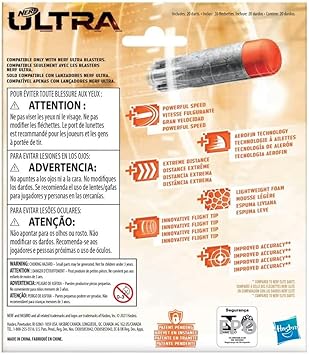 20 NERF ULTRA DARTS: Yenilikçi uçuş ucu, uçuş bıçağı teknolojisi ve hafif Nerf Ultra köpük içeren 20 çığır açan Nerf Ultra dart içerir