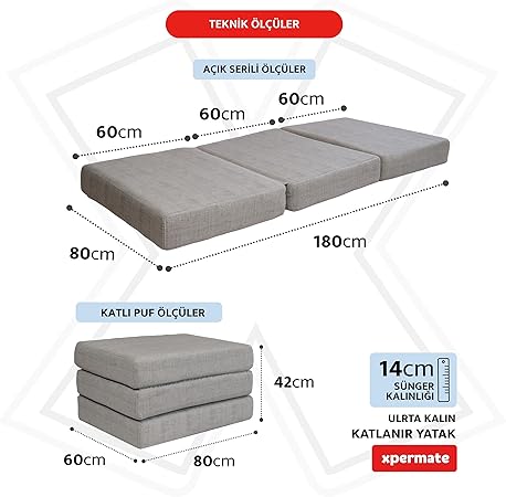 Misafir yatağı olarak kullanıldığında, konuklarınıza konforlu bir uyku deneyimi sunar. Ayrıca, katlanır yer minderi olarak da kullanılabilir, bu da anında rahat bir oturma alanı sağlar.