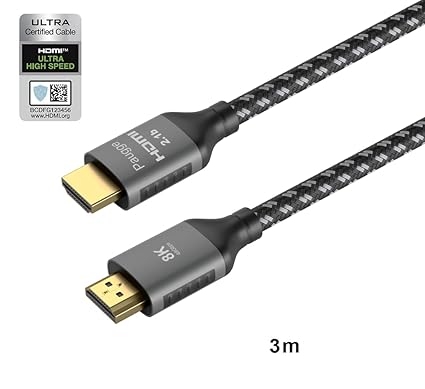 Ultra Sertifikalı HDMI® 2.1b Kablo – (2.1b/2.1/2.0b/2.0/1.4) 10K, 8K 60Hz, 4K 240Hz 165Hz 144Hz 120Hz 60Hz, eARC, HDCP2.3, HDR, D-HDR, Dolby Vision, Dolby Atmos (3m)