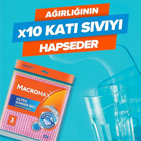 Ultra Sünger Bez 3’lü Paket, Ağırlığının 10 Katı Su Emen Yüksek Performanslı Mutfak Bezi