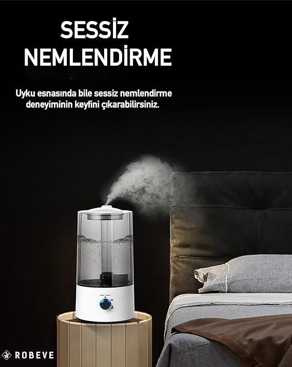 4 Litrelik Geniş Su Haznesi: Uzun süreli nemlendirme sağlayarak, dolum sıklığını azaltır ve 30 saate kadar kesintisiz kullanım sunar.