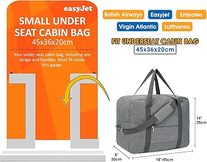 Taşıma Ücretlerinizi Kaydedin. Çanta boyutu 45x35x20cm (Kapasite 30L) 45x36x20cm Easyjet Airlines, British Airlines, Emirates, Atlantic’in kişisel ürün boyutuna uyar, koltuğun altına yerleştirilebilir ve taşıma ödemesine gerek yoktur