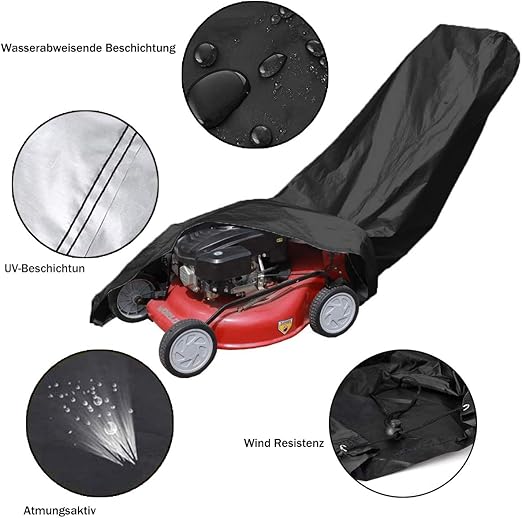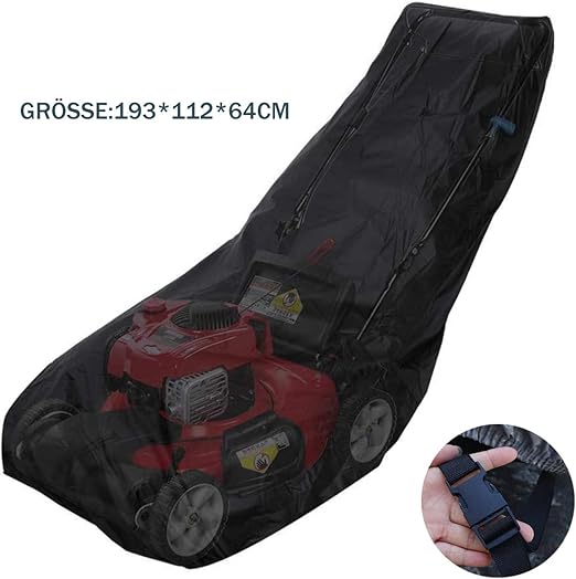Üniversal çim biçme makinesi örtüsü, 193 x 112 x 64 cm, her türlü hava koşuluna uygun çim biçme makinesi kılıfı, ipli ve saklama çantalı