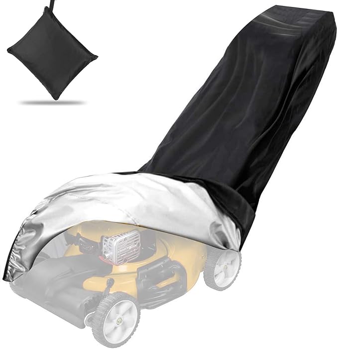 【Rüzgar geçirmez tasarım ve UV önleyici】 Toz geçirmez çim biçme makinesi örtüsünün alt tarafında, rüzgardan uçmasını önlemek için kapağı makinenin boyutuna göre sıkabileceğiniz bir ip bulunur. Ayrıca bu dahili örtünün gümüş bir UV kaplaması vardır, çim biçme makinenizi güneş ışınlarına karşı etkili bir şekilde koruyabilir, dış mekanlar için mükemmeldir.