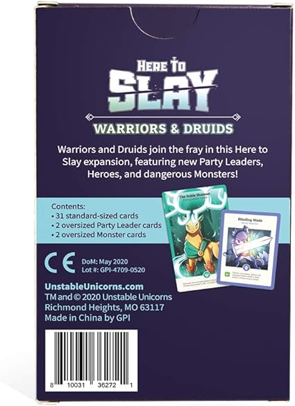 Unstable Games – Here to Slay: Warriors & Druids Expansion Pack – Çocuklar, gençler ve yetişkinler için stratejik rol yapma kart oyunu – 2-6 oyuncu, 10 yaş ve üstü – Acımasız ve sevimli – Aile oyun gecesi için harika