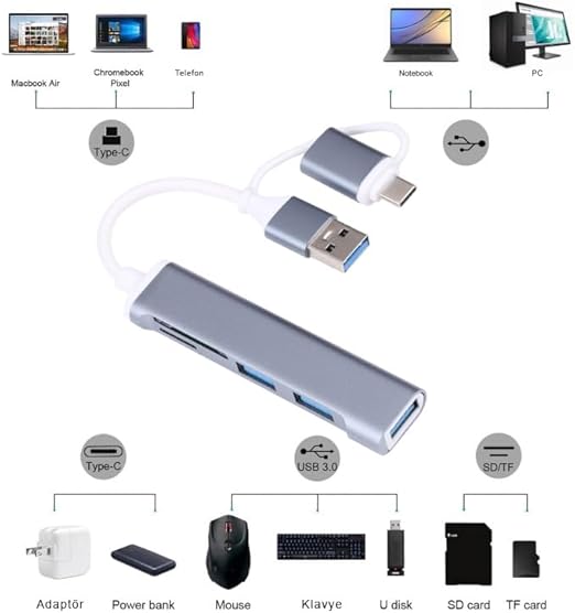 Usb 3.0 Sd Tf Kart Okuyucu 3x Usb 3.0 Hub Çevirici A807
