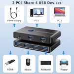 USB 3.0 Switch KVM Seçici 2 Bilgisayar için 4 USB Cihazı Paylaşımı Çevresel Anahtar Kutusu Mouse, Klavye, Tarayıcı, Yazıcı için Göbek; Mac/Windows/Linux için; 2 Paket USB Kablosu Dahildir