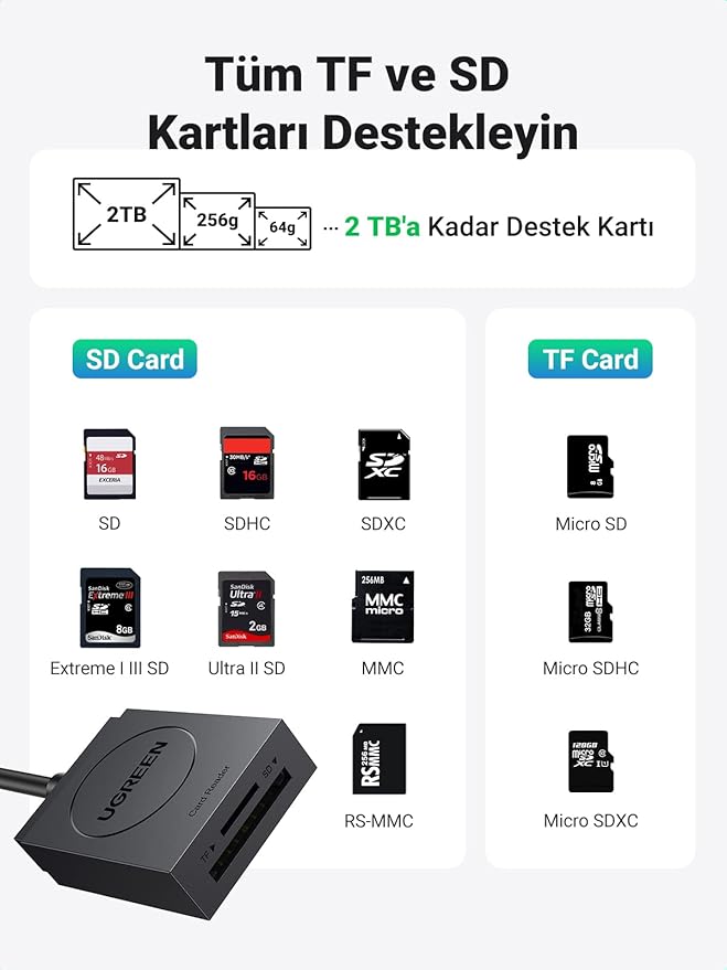 USB 3.0 TF SD Kart Okuyucu, SiyahUSB 3.0 TF SD Kart Okuyucu, Siyah