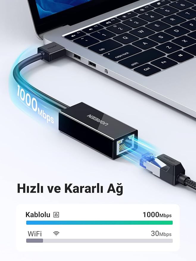 USB 3.0 to RJ45 Gigabit Ethernet Dönüştürücü Adaptör Siyah