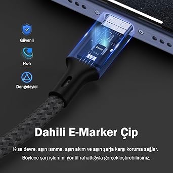 Ekstra sağlam ve dayanıklı : 15W USB-A’dan USB-C şarj kablosu 20.000’den fazla bükülme testine ve 30.000+ fiş testine dayanabilir. PD USB 3.0 teknolojisine sahip hızlı şarj kablonuz konusunda endişelenmenize gerek yoktur. (Not: Koşulsuz değişim hakkınız bulunduğunu unutmayın!)
