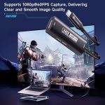 USB 3.0 Video Yakalama Kartı PD 100W ile, 1080P@60FPS HDMI’den USB-A/C’ye, Type-C Adaptörlü, Quest 3 / Pad/MacOS/Switch / PS4 ve PS5 için Yayın Cihazı, Siyah
