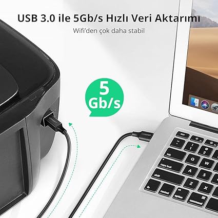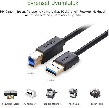 USB-A 3.0 & USB-B 3.0 Yazıcı Kablosu, 1 Metre, Siyah