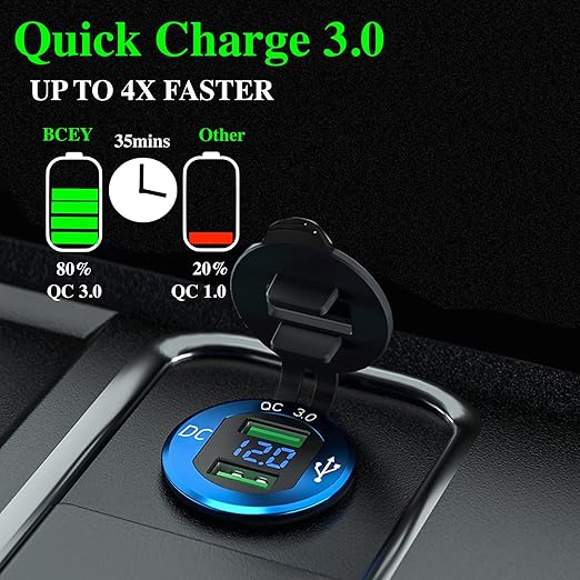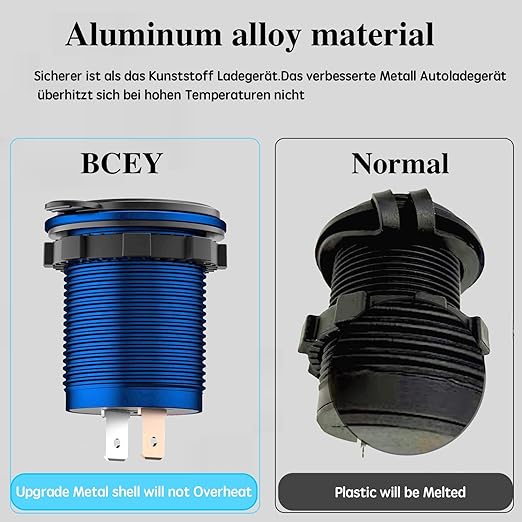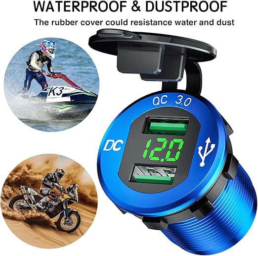 【Güvenilir uzun ömürlü】IP66 sertifikalı ateşe dayanıklı ve su geçirmez malzemeden üretilmiştir. USB arayüzü üzerinde sabit monte edilmiş koruma kapağı ayrıca akım gerilim değerlerini gösterir ve şarj cihazını ani su sıçramalarına karşı etkili bir şekilde korur