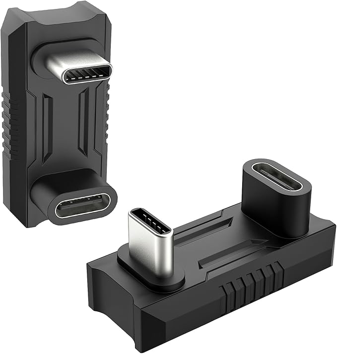 USB C 180 Degree Adapter 2 Pack,180 Degree USB C Adapter Converter USB-C Male to USB-C Female Extender Support 140W Fast PD Charging for ROG Ally/Steam Deck Legion Go Accessories Adapter