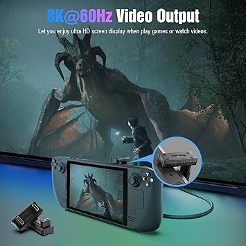 【8K@60Hz Video Transfer】The USB C angled adapter supports 8K video signal and audio transmission, allowing you to enjoy a high-definition visual feast. It brings HD clear, smooth and stable screen picture when you play steam deck games or watch videos. It supports OTG (On-The-Go) function, and can be connected with external devices for data transfer.