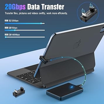 【140W Fast Charging & 20Gbps Transfer Speed】With an output current of up to 140W (28V/5A), this USB C male to female extender provides the blazing-fast PD charging speed for your devices and is fully capable of charging a Macbook or other USB-C device. The U shape Type C extender provides 20Gbps data transfer speed that lessens your waiting time to transfer documents and videos, work more efficiently!