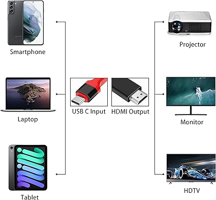 【Uygulama】USB Type-C’den HDMI kablosu, çoklu ekran ekranı için dizüstü bilgisayardan veya akıllı telefondan monitöre, TV’ye veya projektöre video aktarabilir. (hdmi’den usb c’ye değil)