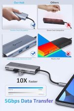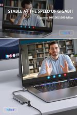【USB C – RJ45 Gigabit Ethernet】. USB-C’den Ethernet bağlantısına 1000Mbps ağları destekler, 100Mbps/10Mbps RJ45 LAN ile geriye dönük uyumludur. Sadece bir Ethernet kablosu bağlayın ve ultra hızlı Gigabit Ethernet hızlarının ve kablolu bağlantının güvenilirliğinin keyfini doğrudan çıkarın. USB 3.0 ile WLAN dengesizliği ve arızalar konusunda endişelenmeyin.