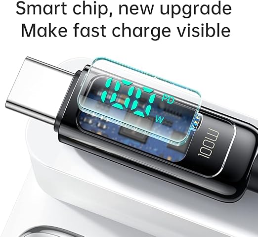【Görsel göstergeli şarj kablosu】İkinci nesil sürüm gerçek zamanlı şarj watt göstergesini gösterir. LED ekranda, yanlış şarjdan şüphelenmezsiniz ve şarj cihazınızın yeterli güce sahip olup olmadığını ve süper hızlı şarjı destekleyip desteklemediğini görebilirsiniz. Çok kolay ve rahat