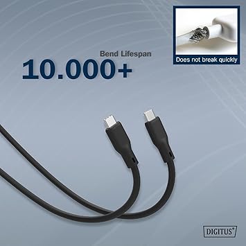 Mükemmel dayanıklılık: 10.000 bükülmeye kadar tahmini kullanım ömrü ile kablomuz son derece dayanıklıdır ve yoğun kullanımda bile güvenilir kalır.